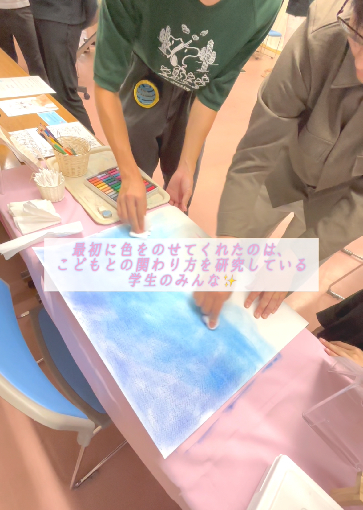 最初に色をのせてくれたのは、子どもとの関わり方を学ぶ学生の皆さん。
